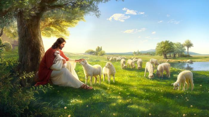 Son Of God The Lord Is My Shepherd Jesus Christ With A Flock Of Sheep Symbol Of Christianity Hand Drawn Vector Illustration Sketch Stock Vector Image Art Alamy